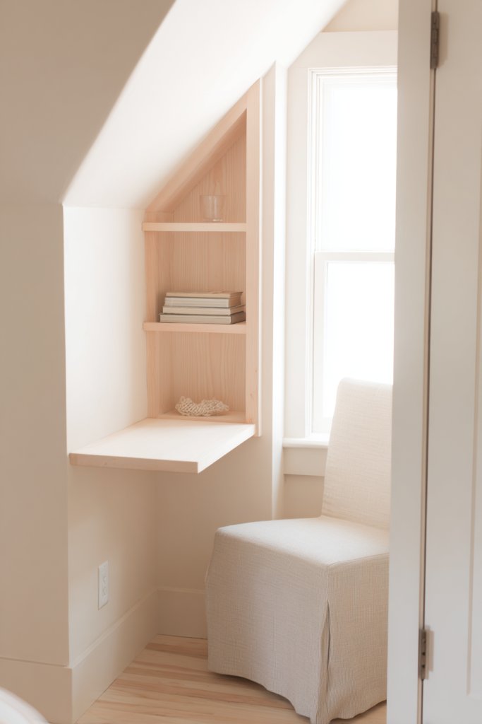 Imagine a small alcove in the corner, fitted with a comfy chair or cushion, a small side table, and soft lighting. The space is decorated with warm textiles, a lamp, or a shelf for books or essentials. It’s a mini sanctuary that adds personality and purpose to your tiny room, making it feel special.
